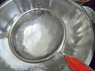 Sieve flour, baking powder, and baking soda together twice and set aside.