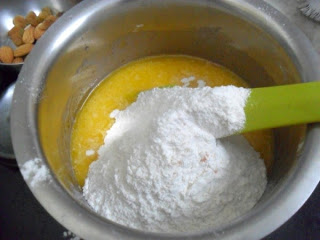 Slowly add the sifted flour and mix in gently, until all the flour is incorporated.