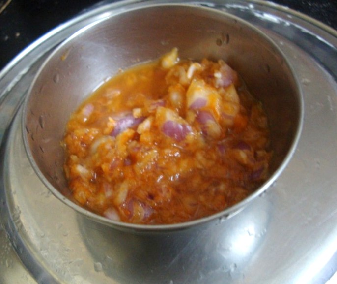 Chop Onions finely, mix in Red Chili powder, salt to taste. Mix well