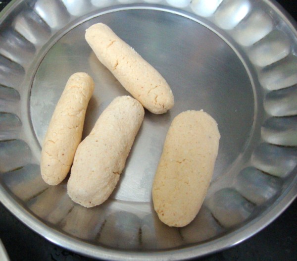 Crumble paneer or grate it into fine powder. Add all the spice powders and corn flour. Mix into a fine mix. It will turn very soft on blending. Divide the paneer mix into small balls, shape them into fingers, keep it aside.