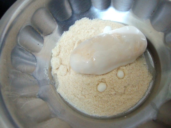 Make a batter of flour with the other ingredients, except bread crumbs.