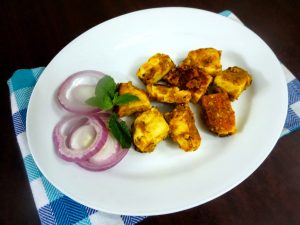 If you want to grill, preheat the oven to 180 C, arrange the paneer on a baking tray or in skewers. Grill for 10 - 15 mins till the edges are browned.