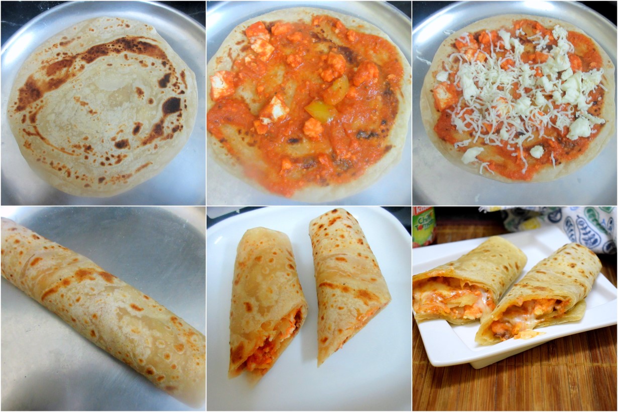 Parotta Paneer Pizza Rollup is as fusion as you can get! We make Paneer Butter Masala at least once a week. The kids never get bored, while the Adults refuse to have it so frequently. So we alter it and make it compulsory at least once or twice a month for the Adults. While my kids can have this all the time.