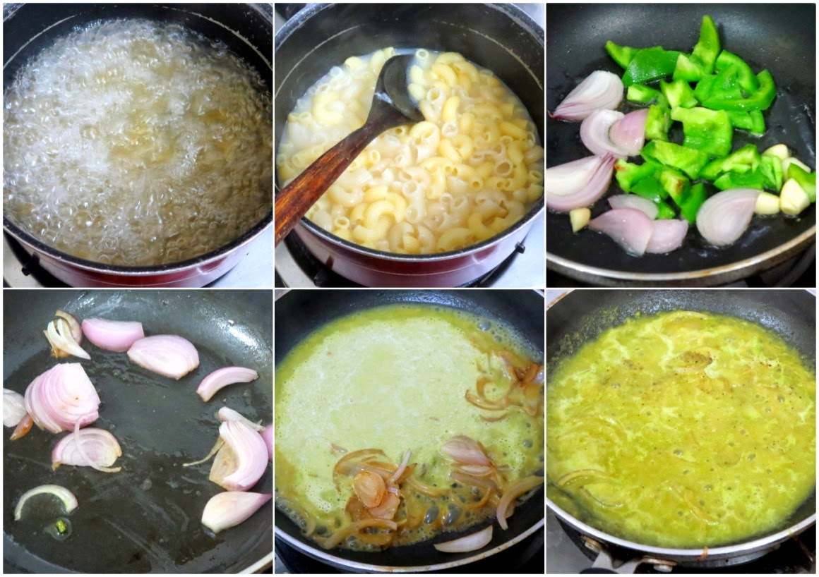 - Heat cooking oil in a nonstick pan, saute chopped capsicum, onions, garlic till it tastes colour. Allow to cool and blend to a puree.