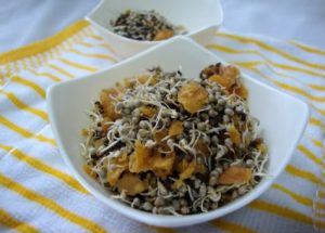 There is really no recipe for this. Wash and keep the Millet in a muslin cloth overnight. Sprouts come out.