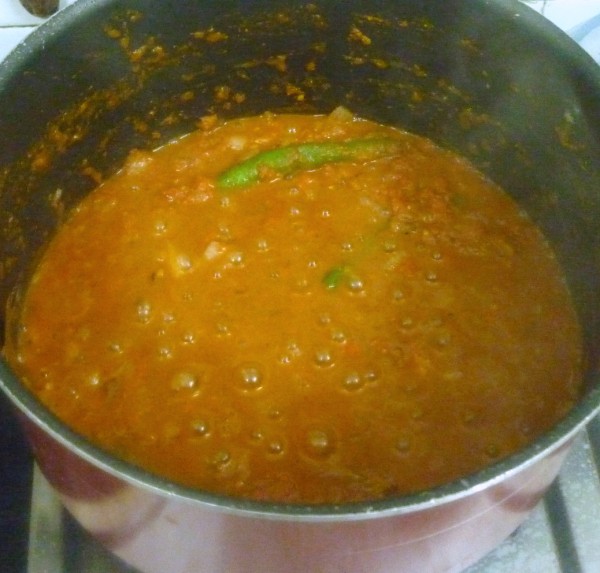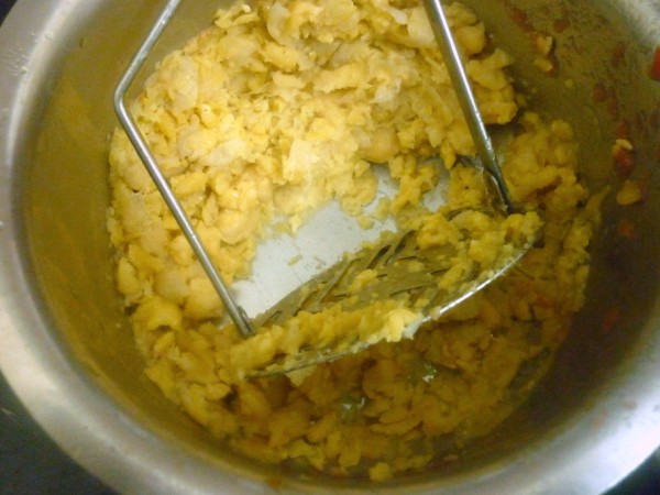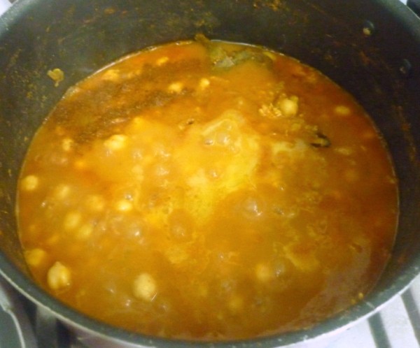 When the pressure falls down, remove half a cup of boiled channa, mash well and mix to the pan. Cook for 5 mins. Then add the channa, stir well for couple of mins, add the water along with required water for required consistency. Cook till it reaches a thick gravy.