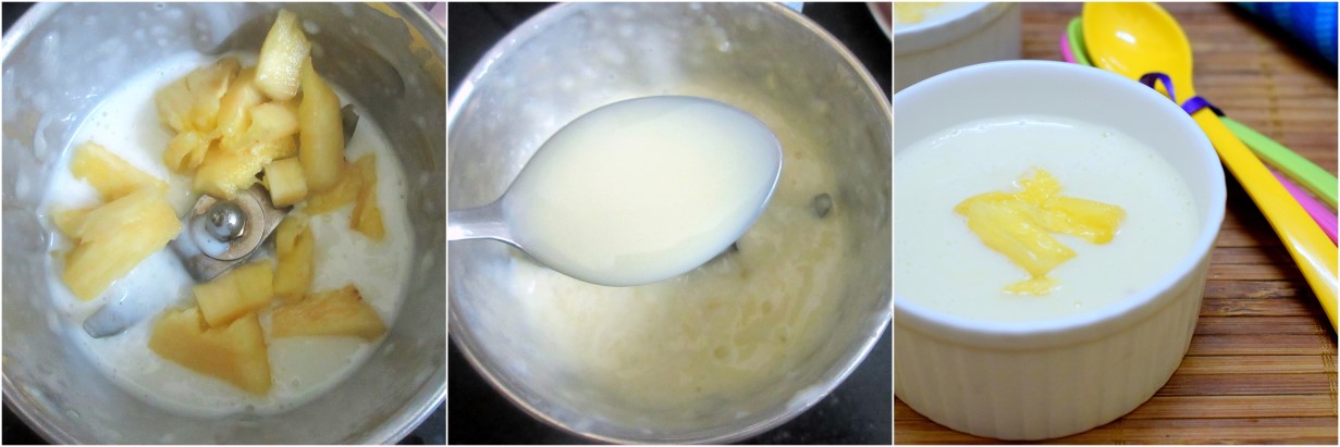 • Take the corn flour liquid to a mixer, add the chopped pineapple and pulse to a smooth paste.