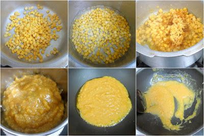 Wash and soak the channa dal for atleast 2 hrs. Change water and pressure cook with enough water.