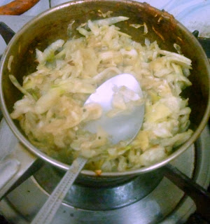 Wash and grate both bottle gourd and cabbage. In a pan, heat the oil, add the grated vegetables, saute well. Add the salt, spice powder and simmer till done. Cook till all the moisture is gone and the vegetables are soft and dry.