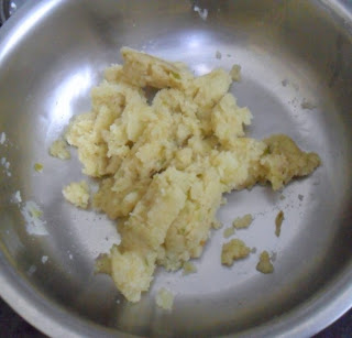 MW aloo for 4 mins after slashing the outer layer with knife. Once done, soak in water for the skin to peel off. Press with fork to make a paste.