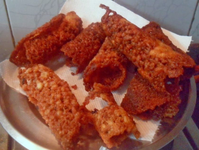 This dish was done last month itself and after initial mishap, the batter turned out fine. It was a real adventure, trying it out. I saw this recipe from Divya's space. She has given step by step pictures, which are very helpful.This is called Utanki, a sweet is from Andhra and Odisa (South-west Zone, Srikakulam Zone).