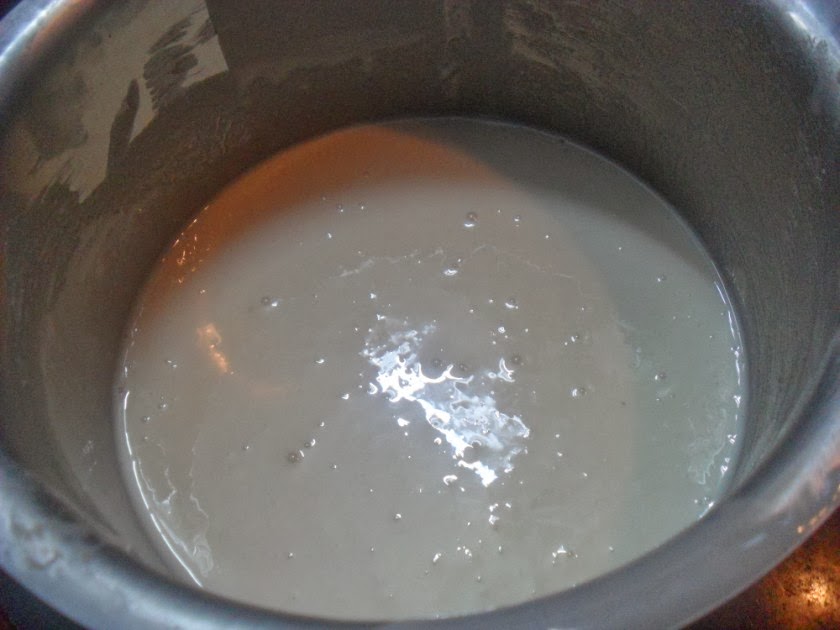 Now take a big bowl add sugar, milk and rice flour mix well till sugar melts. Keep it aside for 3 to 4 hours.