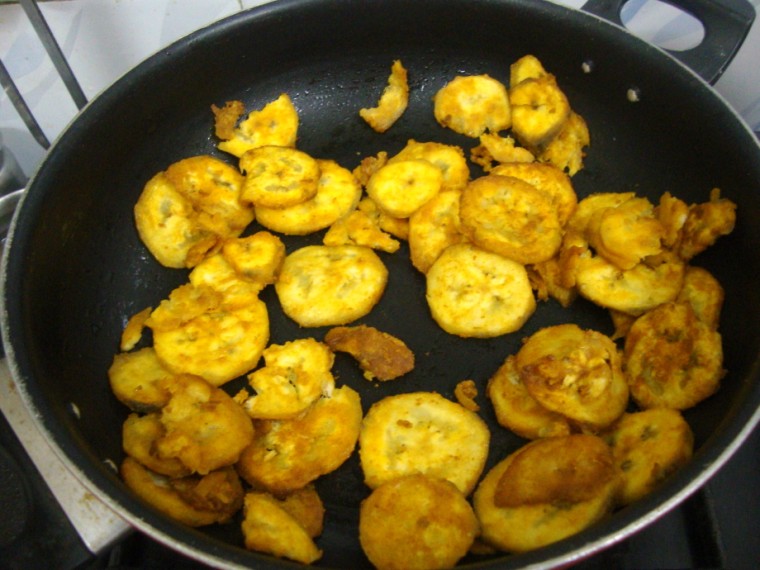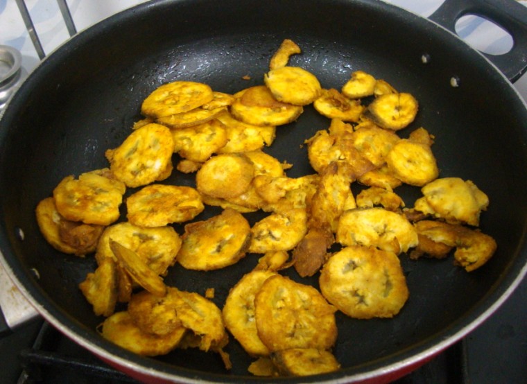 This takes about 15 - 20 mins for the plantain to get cooked and crispy.