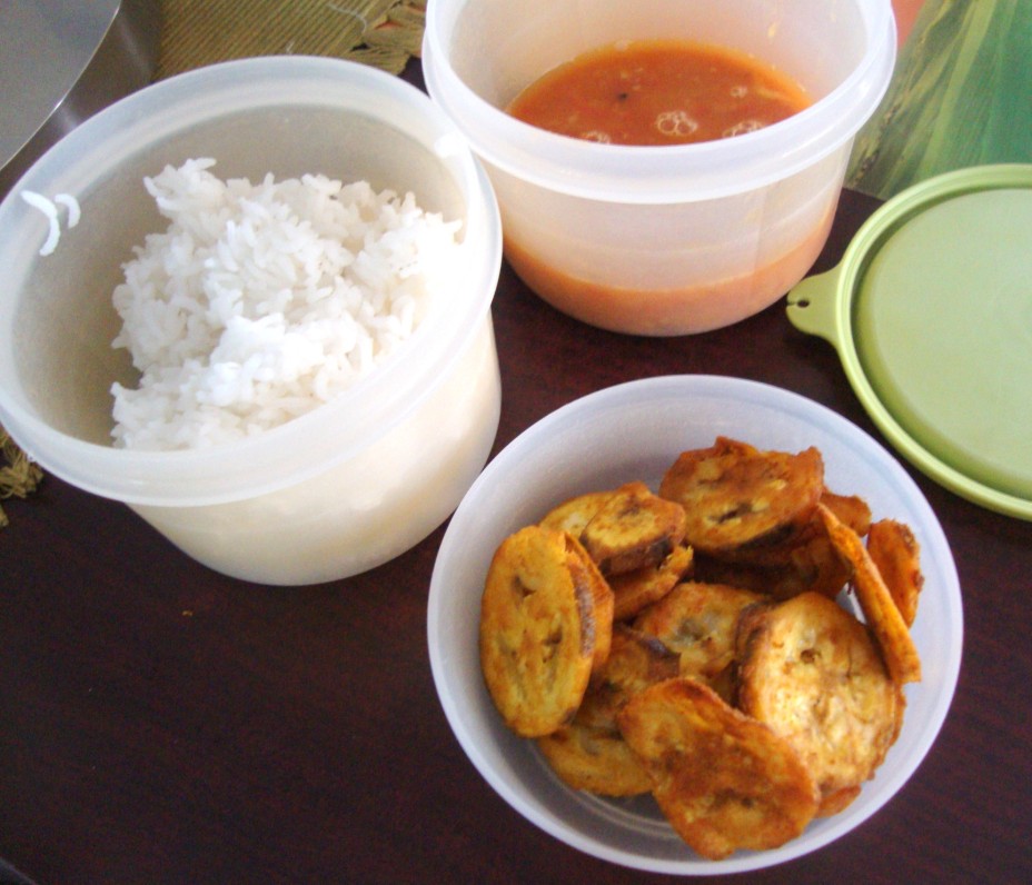 Paruppu Sambar, Vazhakkai Roast with Rice ~ Our Meal