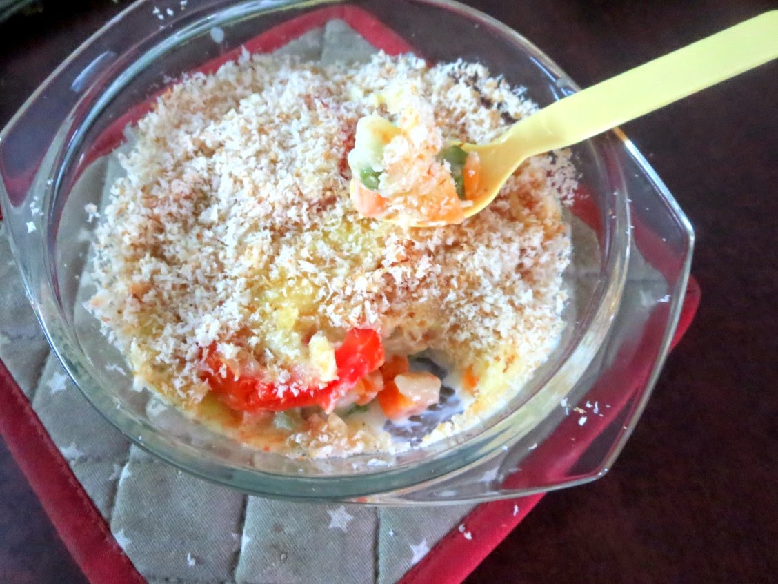 Never thought au gratin can be made in the microwave. Looks colorful and delicious.
