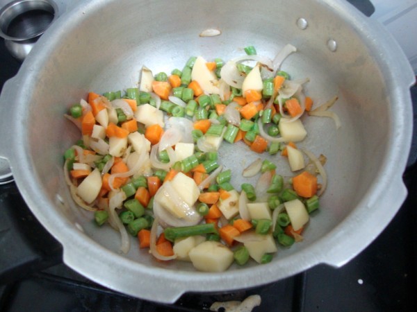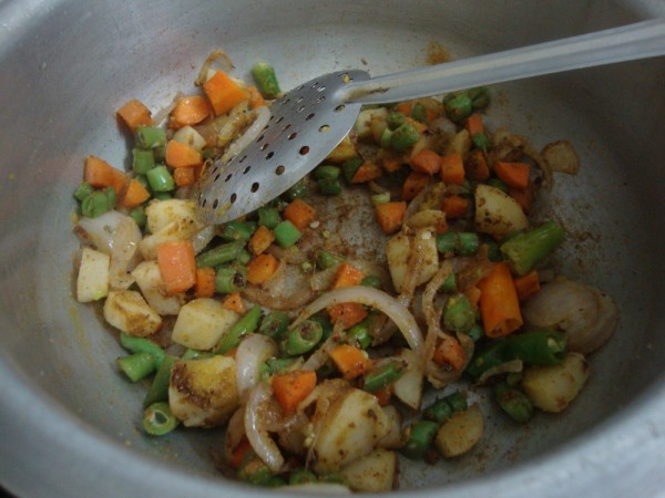 Add the chopped vegetables, simmer for 3- 4 mins with lid covered.