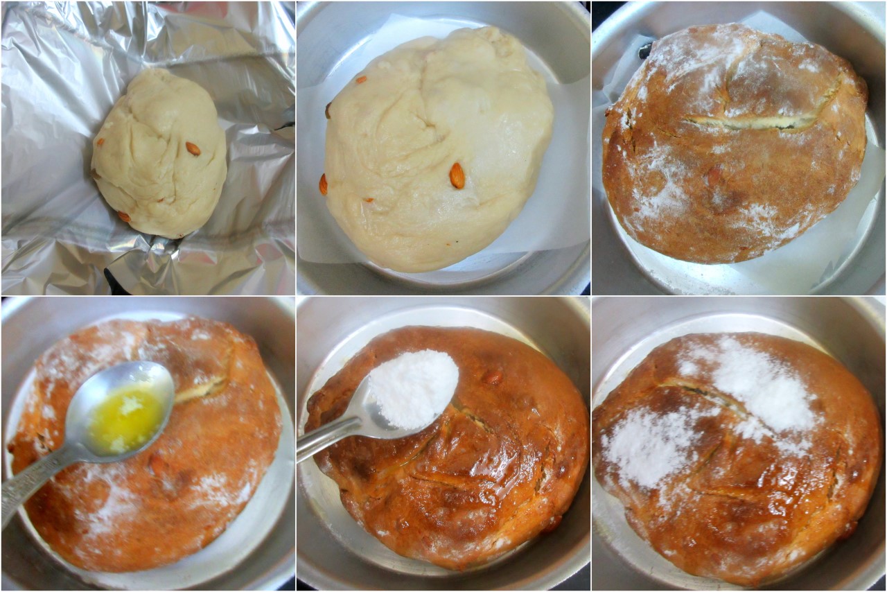 My original plan was to bake this during the weekend, which I missed and hence made it on a weekday. I planned to rest it in the fridge and bake it in the night. I was so sure I would be able to click and post on time. However, things always happen at its will. While kneading the dough, since I was making only half the recipe, I seem to have ended up adding more butter than required and less yeast than it requires. This always seems to be happening off late. The dough was quite thick.
