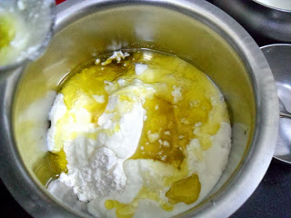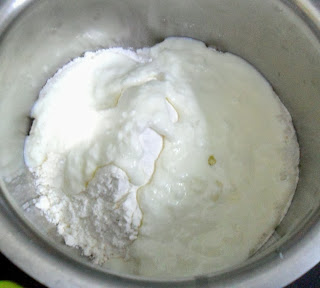 - Add baking powder, baking soda and gently mix in the curd sugar mix.